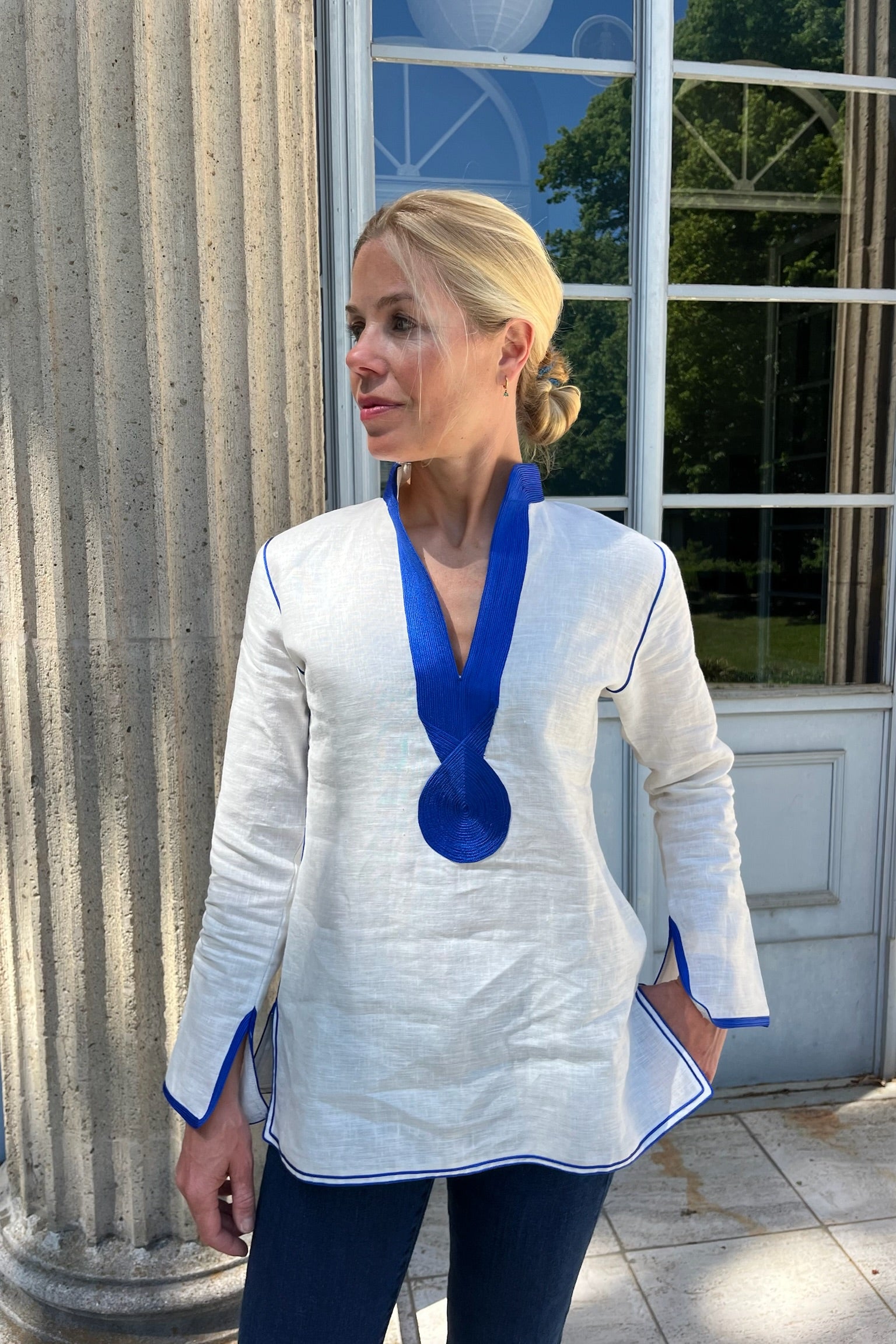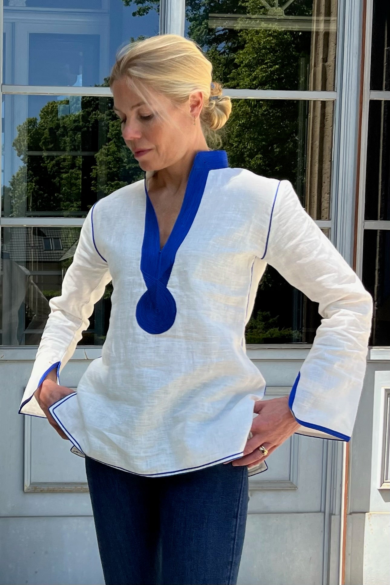 Introducing NOUÏKKA's exquisite Essaouira Kaftan Blouse, meticulously handcrafted from linen in the vibrant city of Marrakesh. This limited edition piece embodies the essence of spring with its lightweight and breathable linen fabric, perfect for embracing warmer days ahead. Whether you're lounging by the beach club or enjoying an evening out, this versatile Kaftan Blouse easily transitions from casual to elegant. Pair it with jeans and flats and a crossbody bag for a relaxed city stroll or dress it up with trousers statement accessories for a chic evening ensemble. Elevate your wardrobe with this timeless piece that exudes effortless style and sophistication.