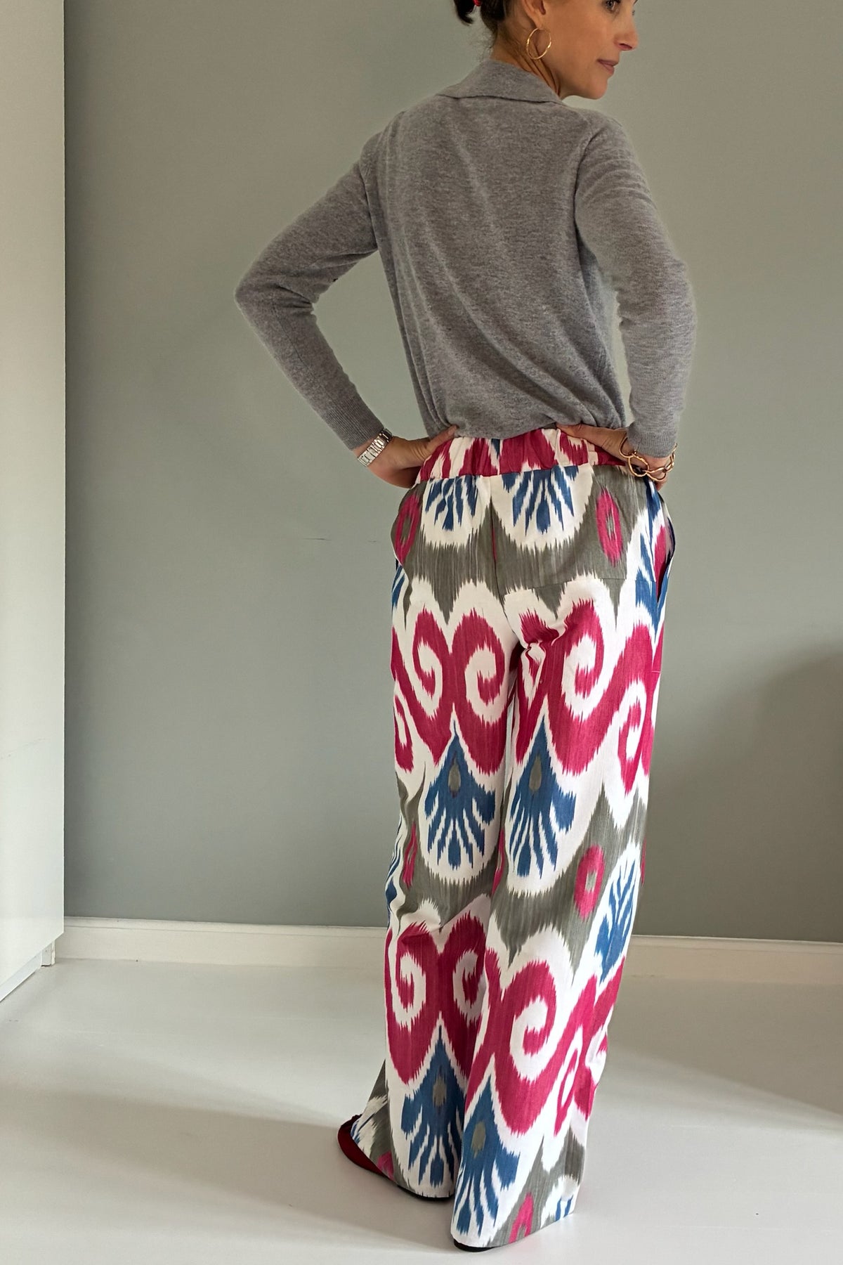 These beautifully crafted Ikat trousers are made from 100 % cotton, woven in Uzbekistan using traditional techniques.