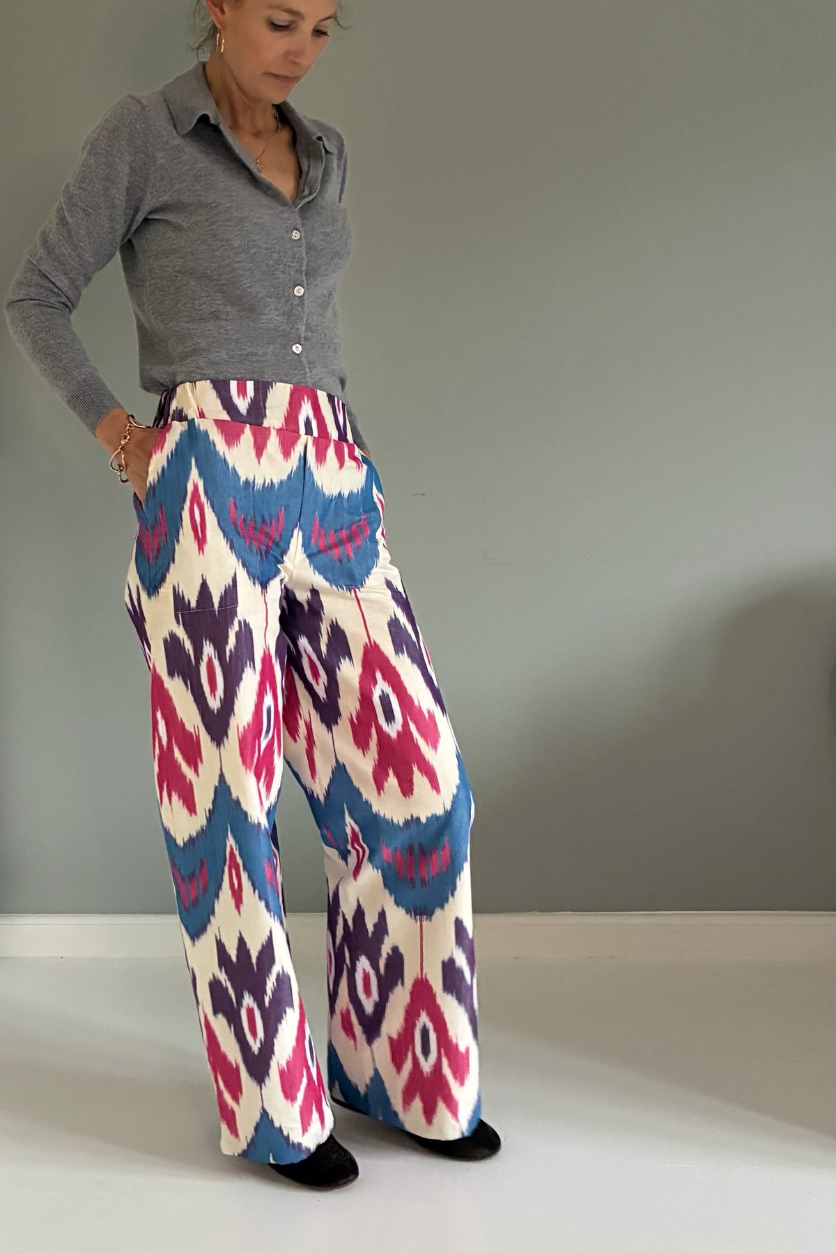 These beautifully crafted Ikat trousers are made from 100 % cotton, woven in Uzbekistan using traditional techniques.