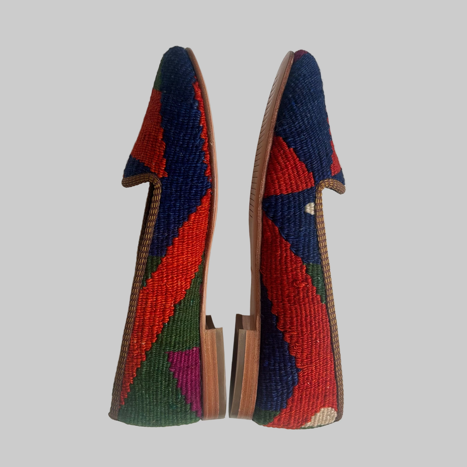 Care: Our Kilim Loafers are very durable and do not require much care. If the shoes get wet, they should be dried and stuffed with newspaper to keep their shape. If the Kilim Loafers do get dirty, brush them gently when they are dry.